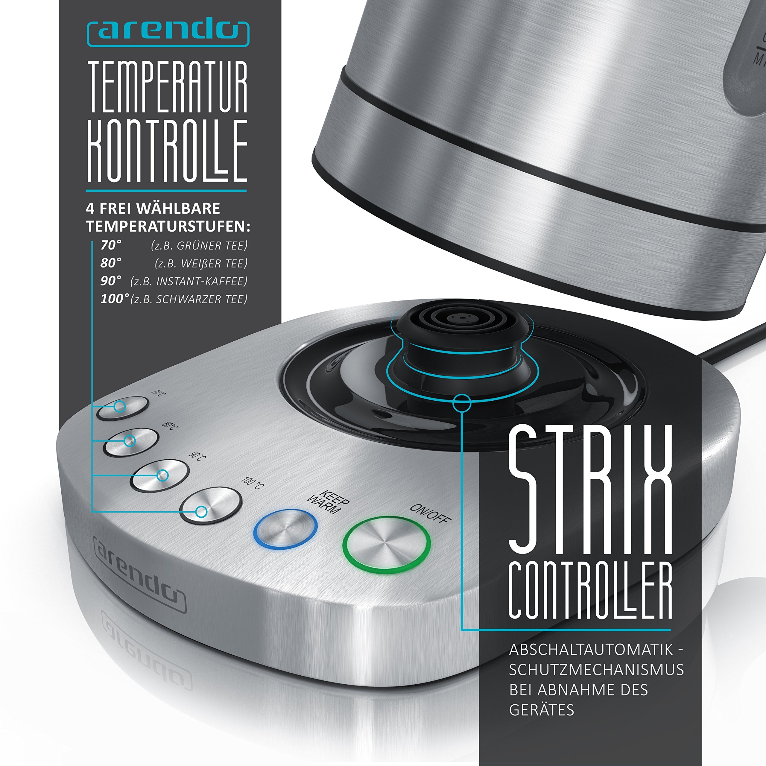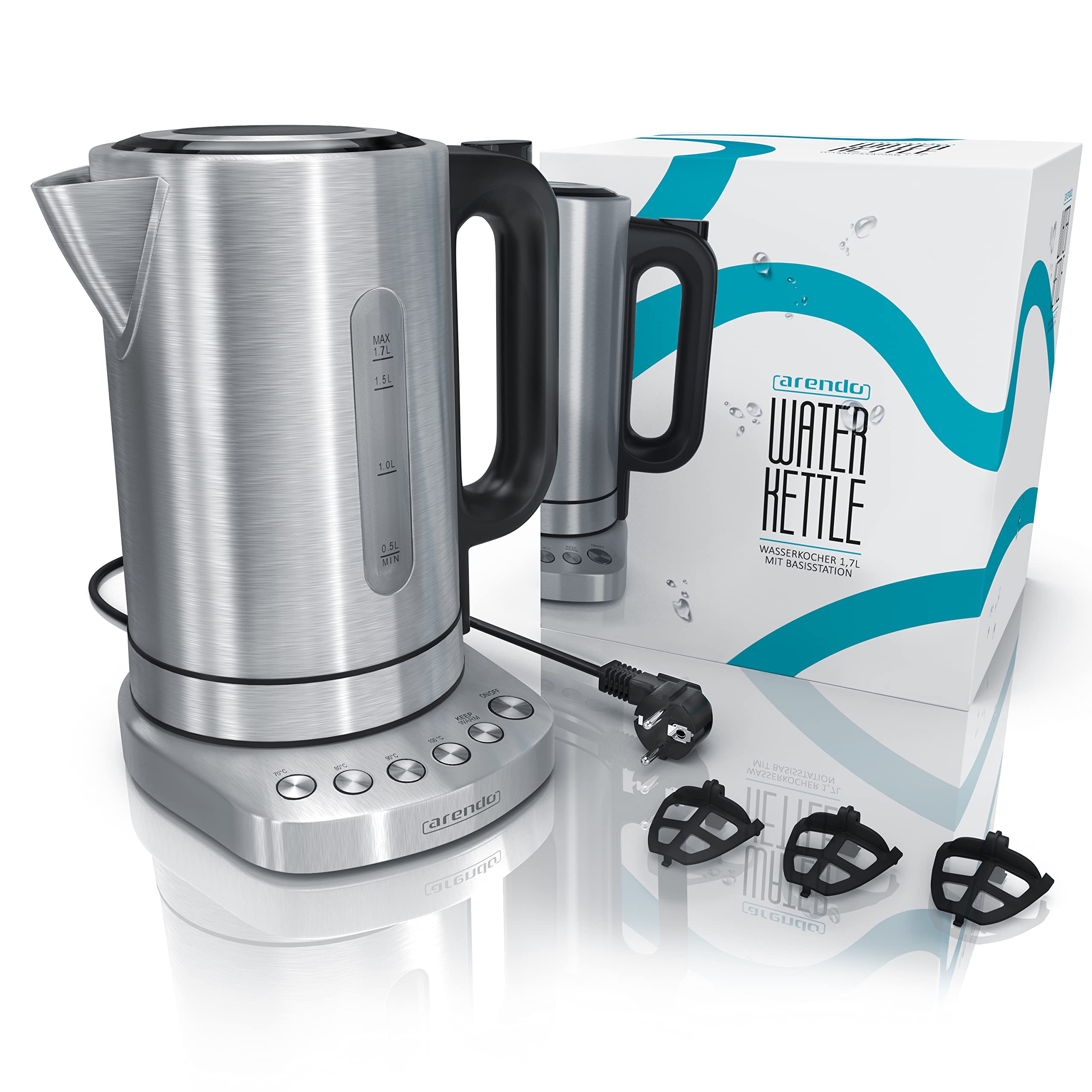 - Arendo Edelstahl-Turbo-Wasserkocher mit Basisstation inkl. vier wählbare Temperaturstufen + Warmhaltefunktions-Taste + On/Off | 302549