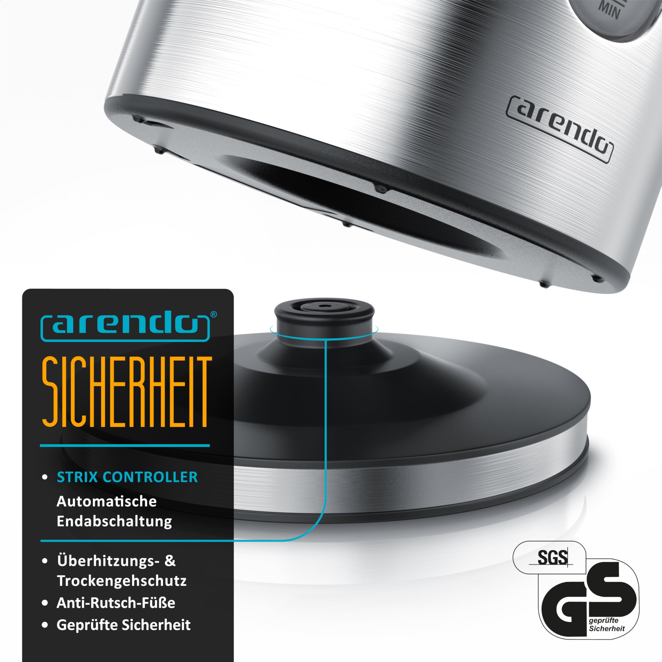 Arendo - Wasserkocher mit Temperatureinstellung - Edelstahl - Temperaturauswahl 35°C bis 100°C – LED Display – Warmhaltefunktion – One-Touch Deckelöffnung – Sichtfenster für Wasserskala